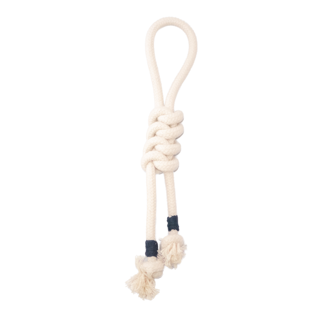 Het touwspeeltje "Snake Knot" is gemaakt van 100% natuurlijk katoen. Door de gevlochten structuur van het katoen is hij extra sterk. We hebben speciaal gekozen voor een materiaal vrij van kleurstoffen of andere giftige stoffen. Hierdoor is hij ook heel geschikt voor het reinigen van de tanden als jouw hond er op kauwt.